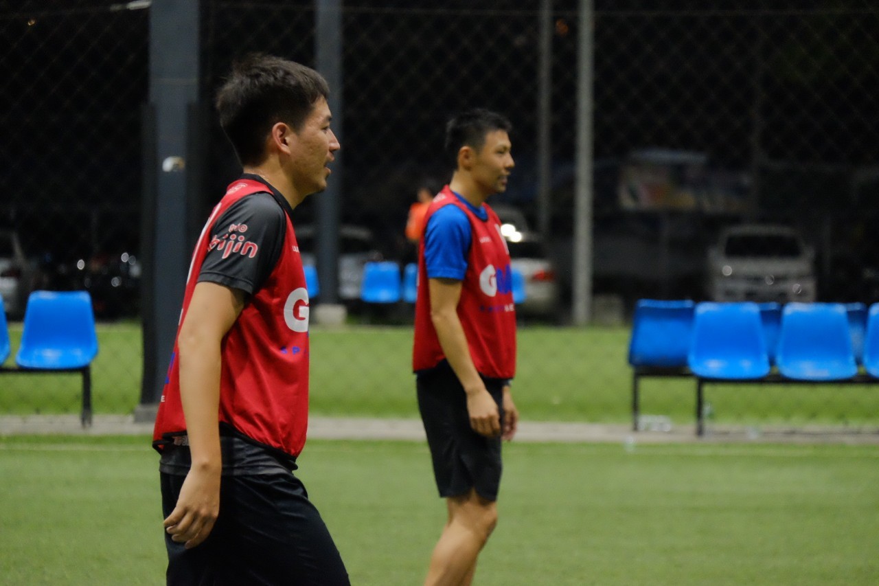 迫田さんのサポートしてた方(写真左)も、いつもバンコクのサッカーで一緒にプレーする方でした。(GK豆田さん)