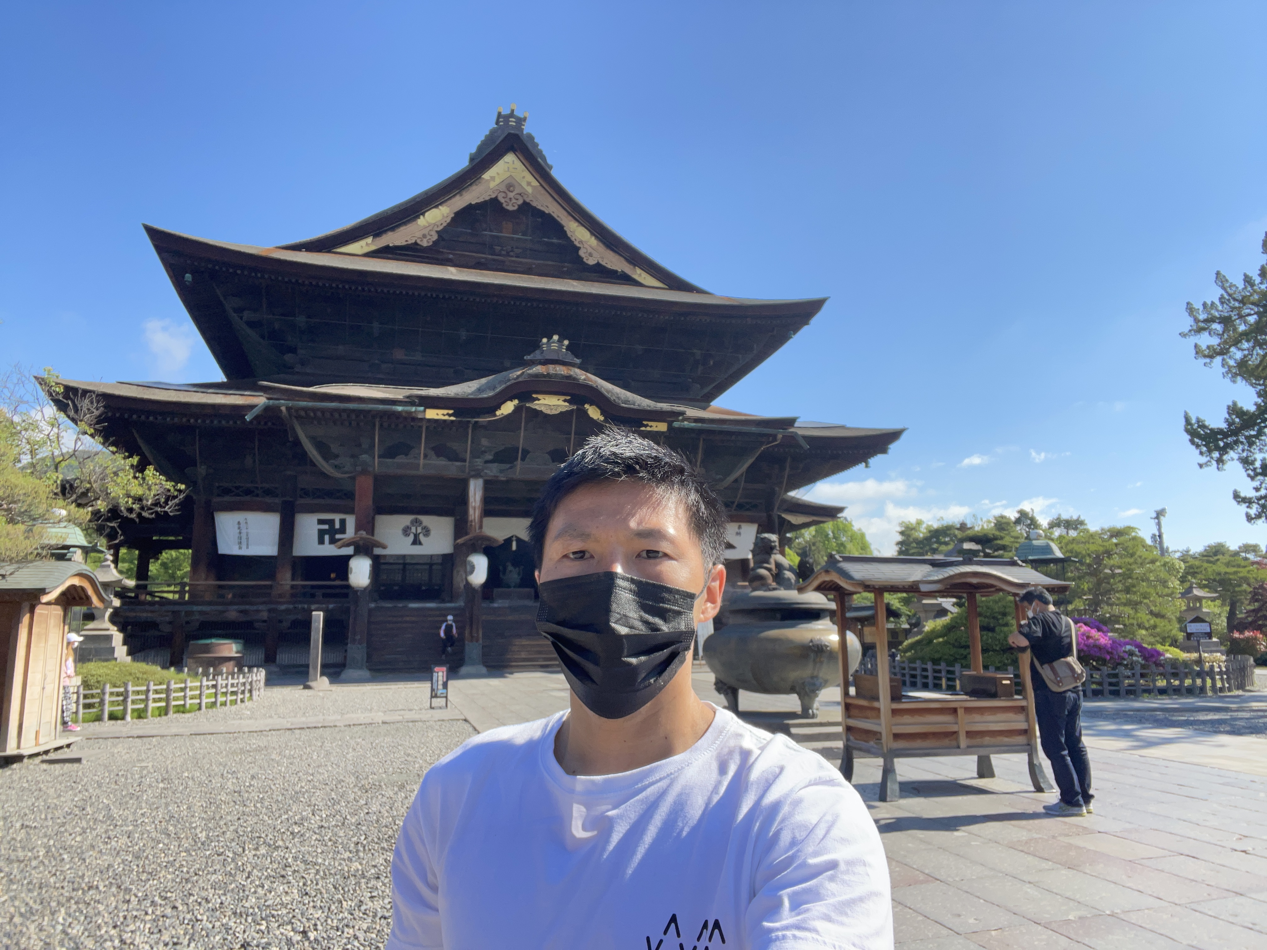 6時朝散歩→温泉→朝食→善光寺→プラン追加で戸隠神社→苗名滝→へきそば→ビッグスワンに13時半着。