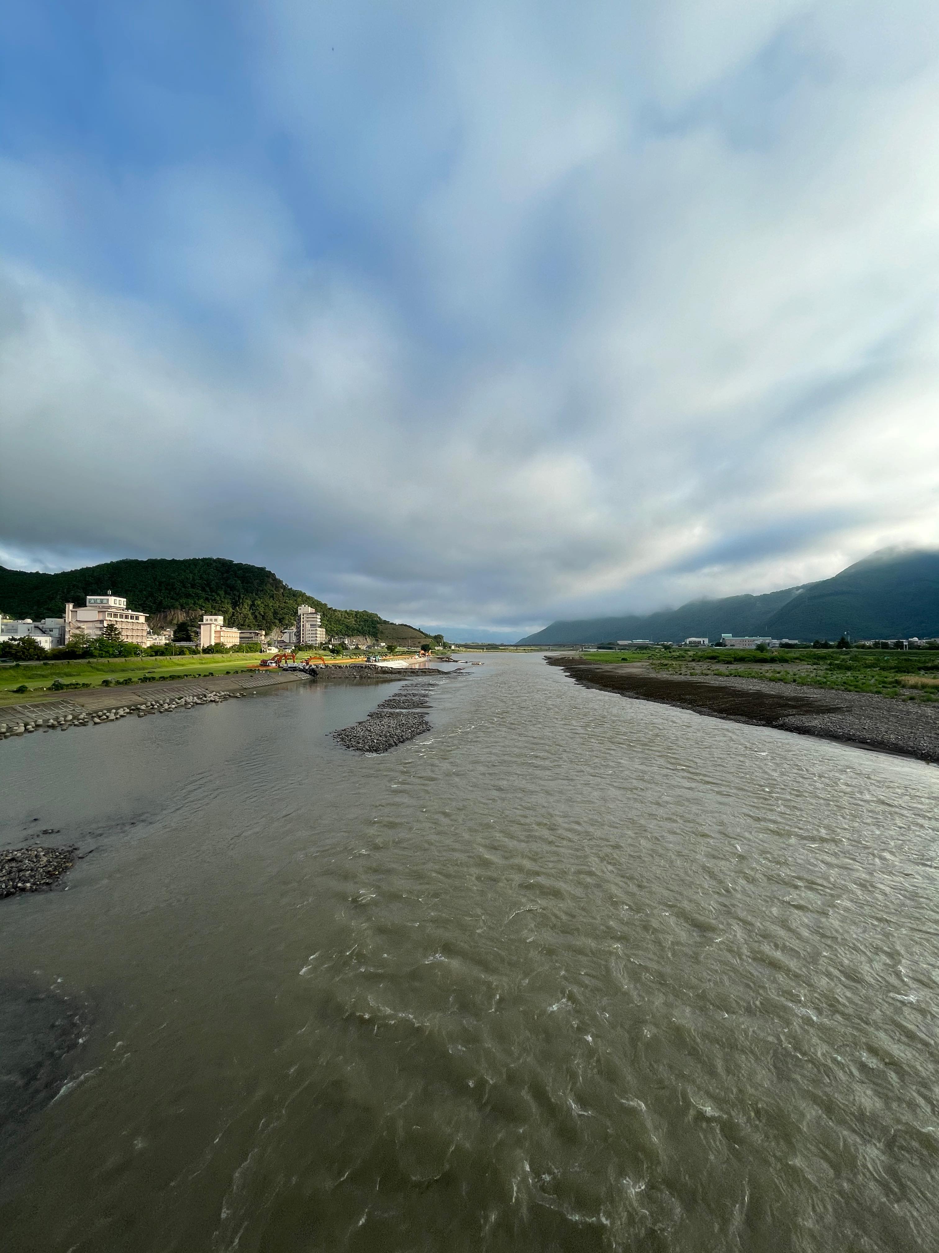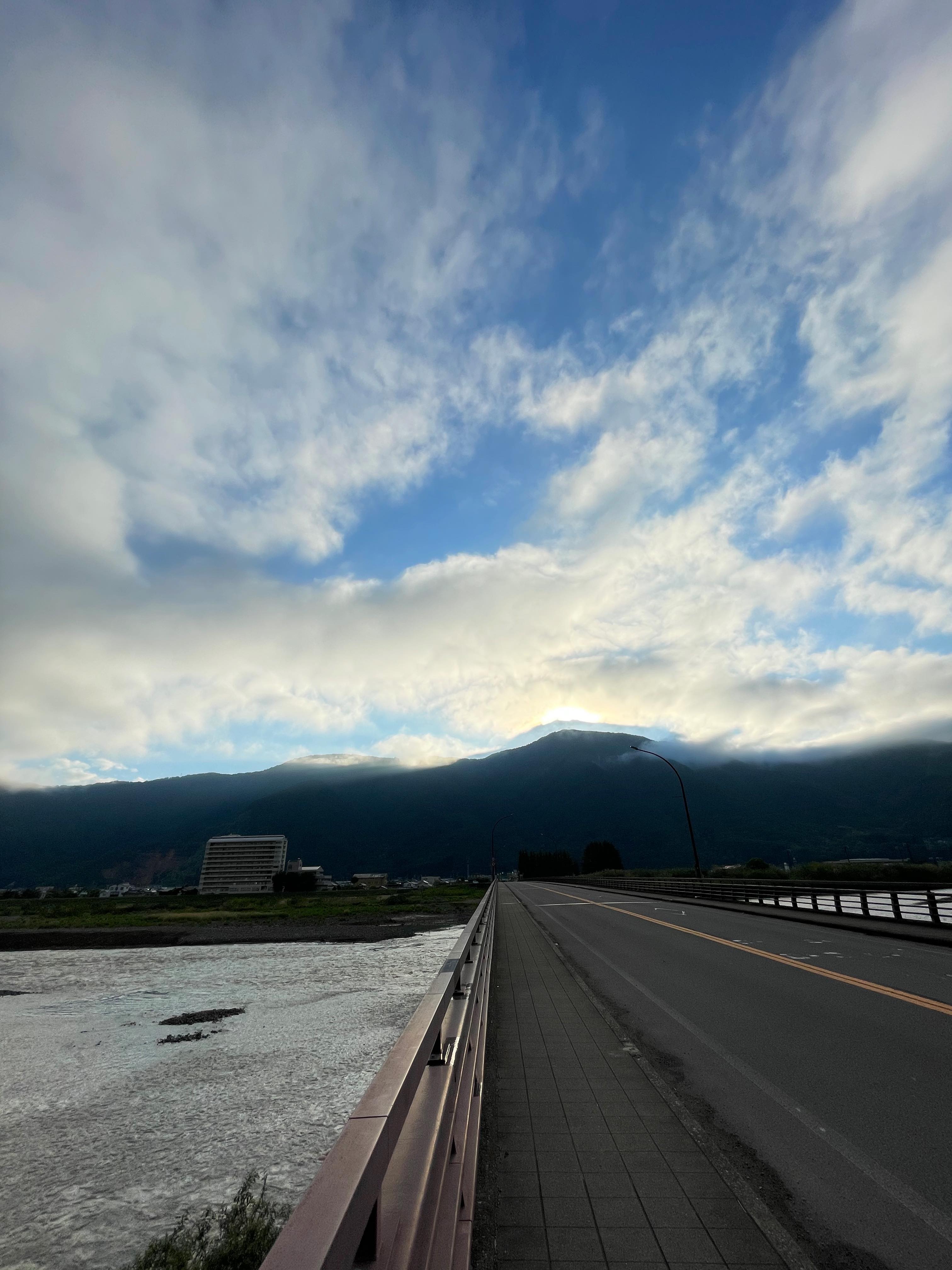 昨日は夜だったので、朝の千曲川を散歩がてらみに行こうかなと、6時起き。