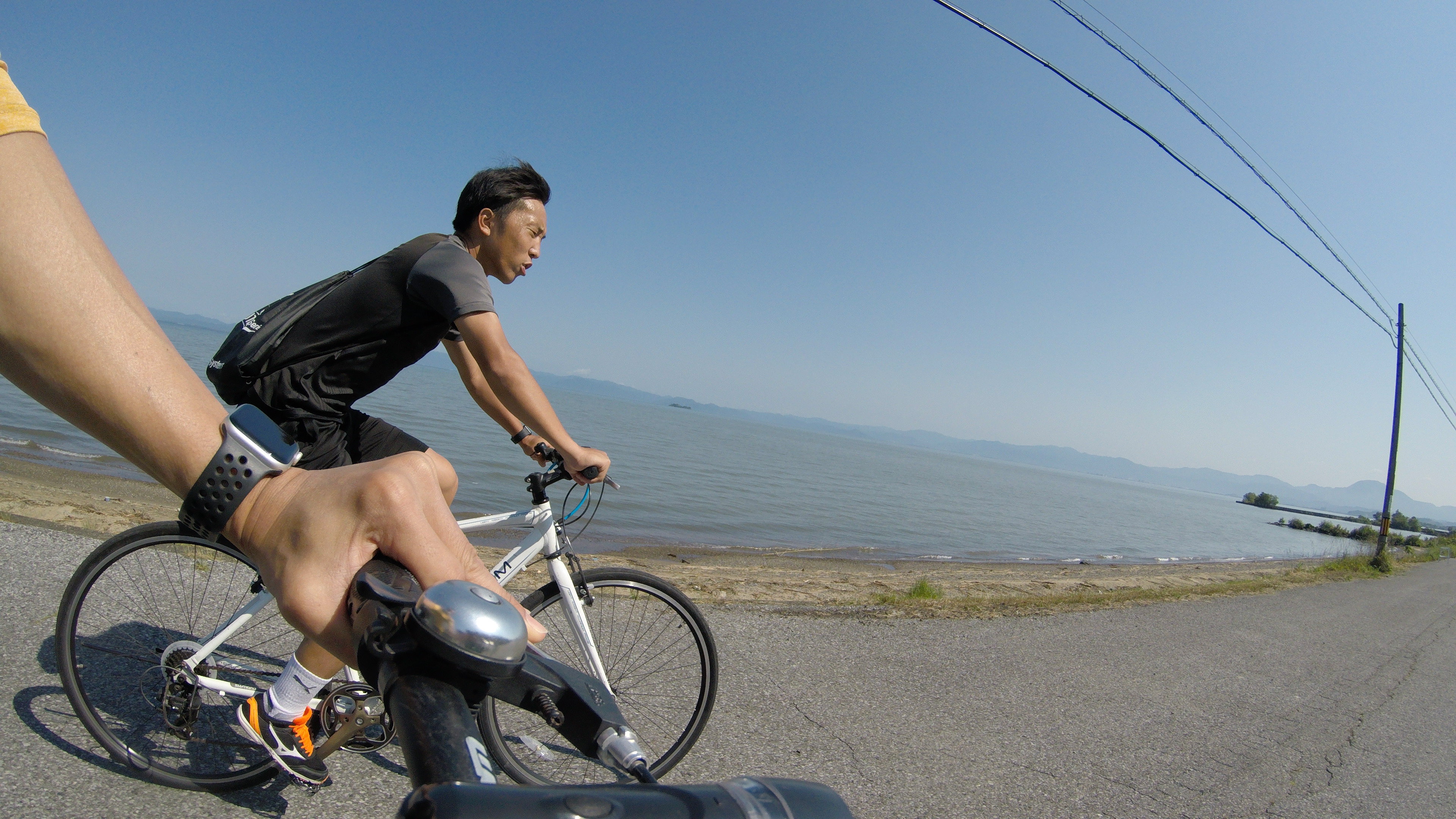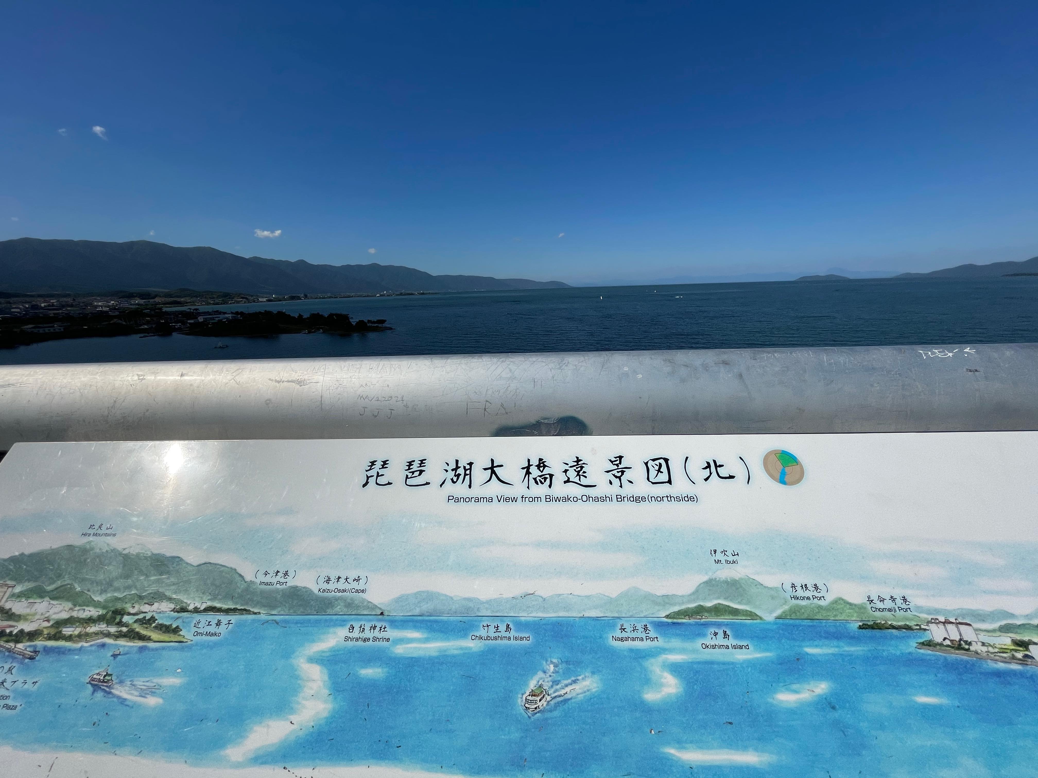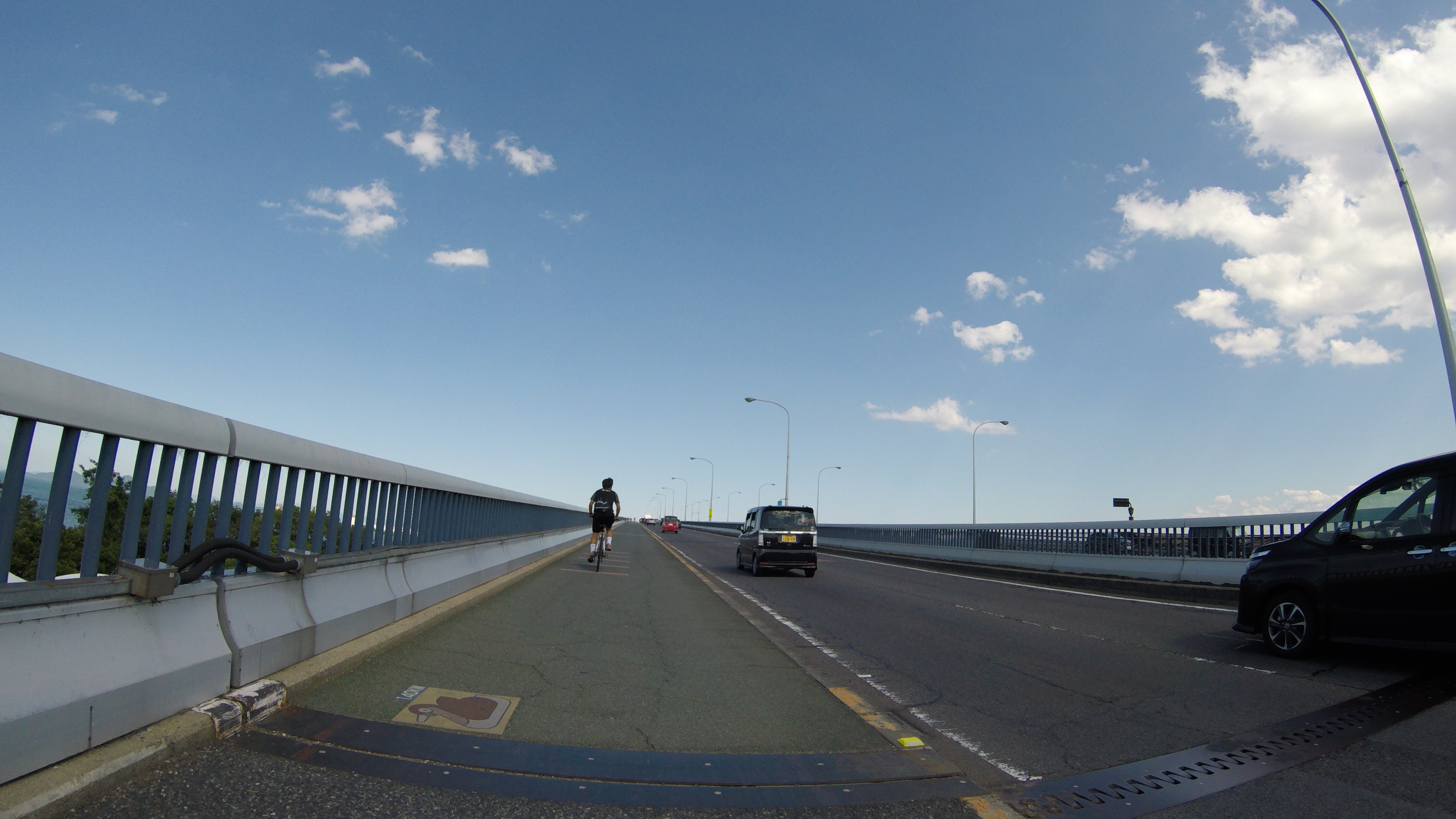 後は琵琶湖大橋を越えてもう少しだ(残り53km。笑)