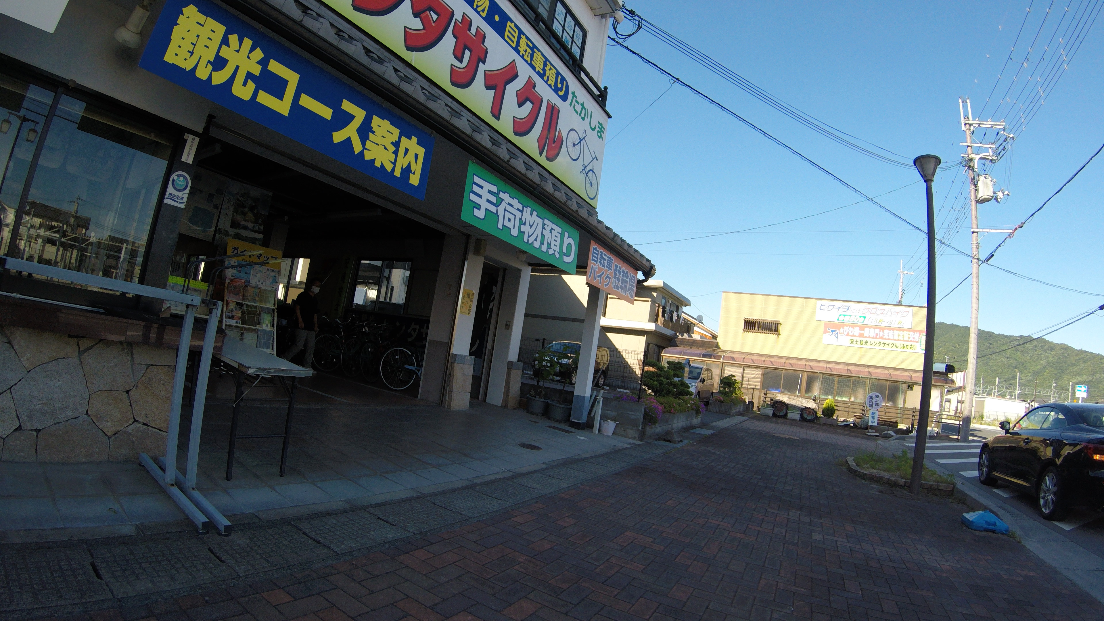 条件は早く店が空いてるところ、閉まるのが遅いところ、スポーツバイクを借りれるところ。