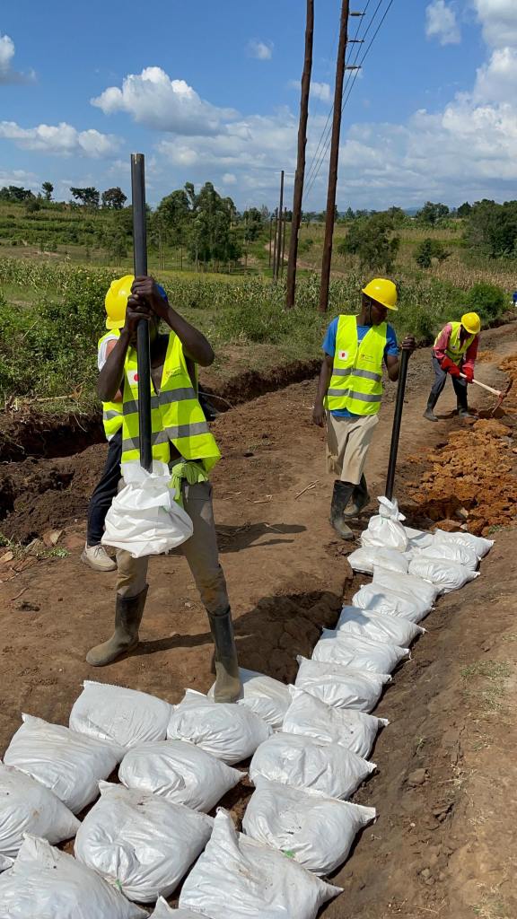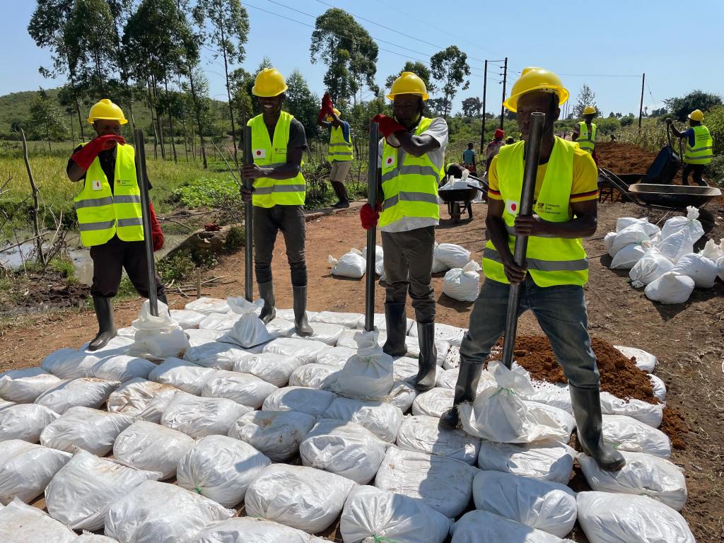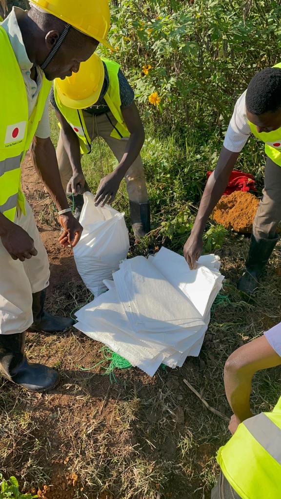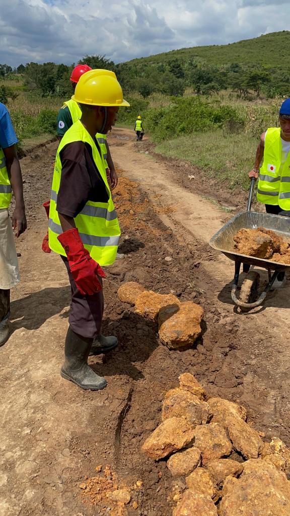 簡単にいうと、雨が降ったら通行が出来ないほどの悪い道を、現地の人達の力で、日本の土のう整備技術を用いて、自分達の道を自分達で直す!