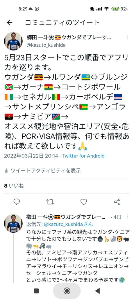 5月21日がウガンダリーグの最終戦なので、その後にまずはアフリカを旅します。